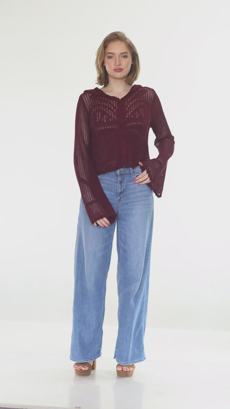 This cropped zip hoodie features an intricate butterfly lace knit that adds texture and visual interest without feeling heavy. Designed with a fitted silhouette, full-length sleeves, and a functional front zipper, it layers easily over tanks or bralettes. The lightweight open-knit construction gives it a subtle sheer effect, making it a versatile piece for casual styling or elevated layering. Perfect with high-waisted denim or skirts for an effortless, modern look.