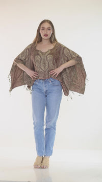 The Lotus Paisley Fringed Chain Top is a lightweight, flowy poncho-style top adorned with an intricate paisley pattern and finished with delicate fringe. Its relaxed silhouette drapes effortlessly, offering a blend of comfort and elegance that’s perfect for layering over tanks, camis, or swimwear. Available in Blue or Maroon, it’s an ideal choice for casual days, music festivals, or beachside evenings.