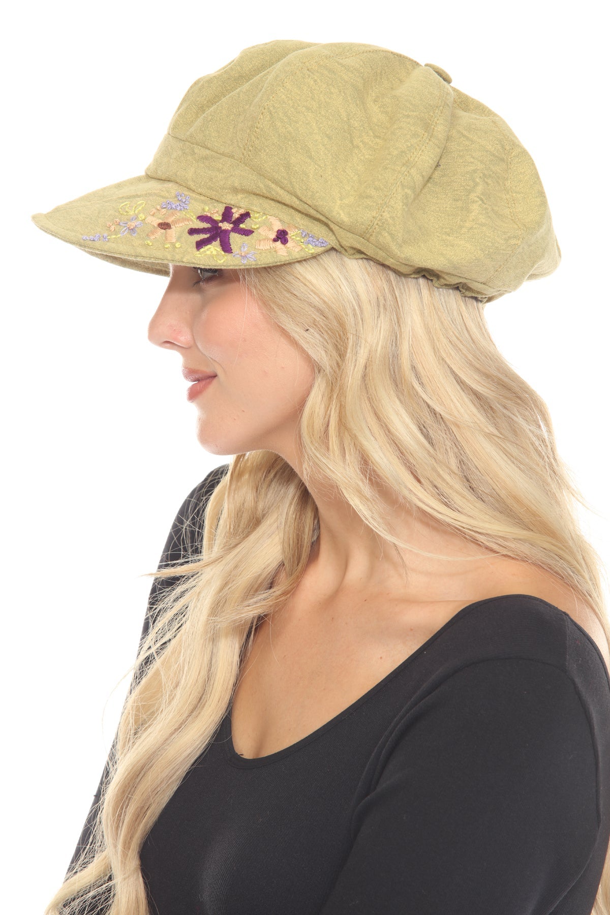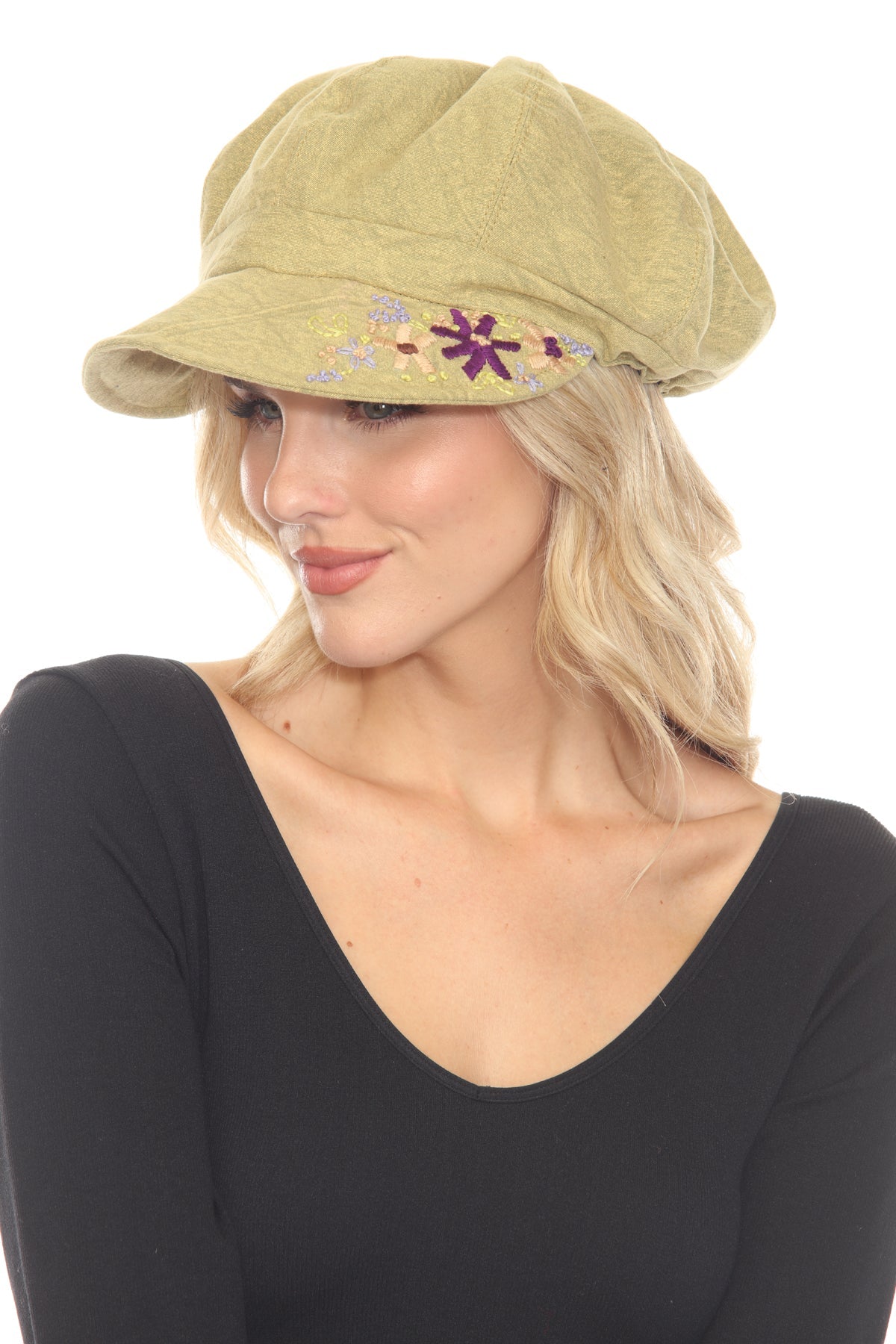 Stonewashed Embroidered Newsboy Cap