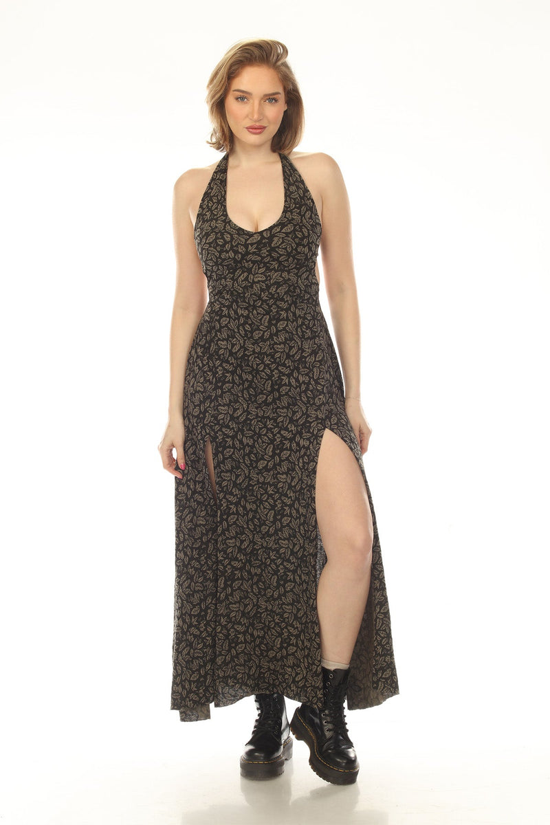 Leaf Print Tie Back Maki Dress