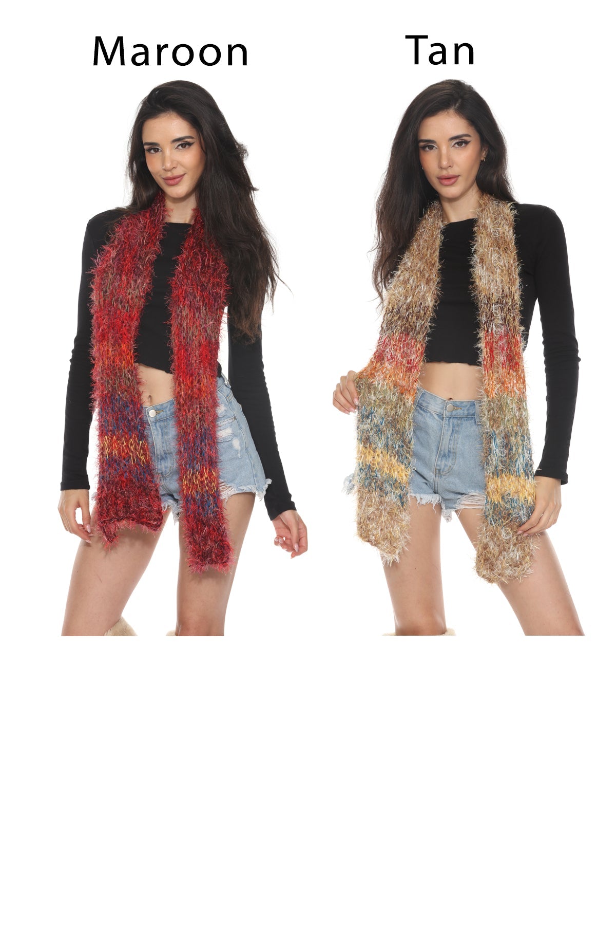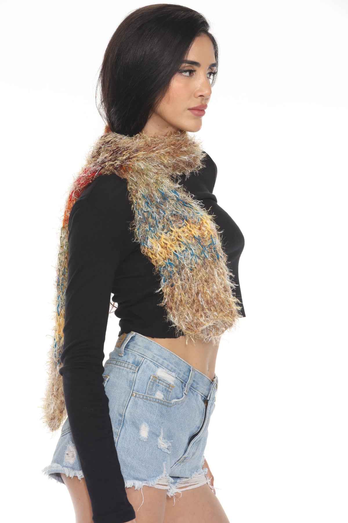 The Fuzzy Striped Y2K Scarf brings playful retro vibes to your winter wardrobe. Featuring a soft, textured knit with bold stripes, this cozy scarf adds warmth and statement style to any outfit.